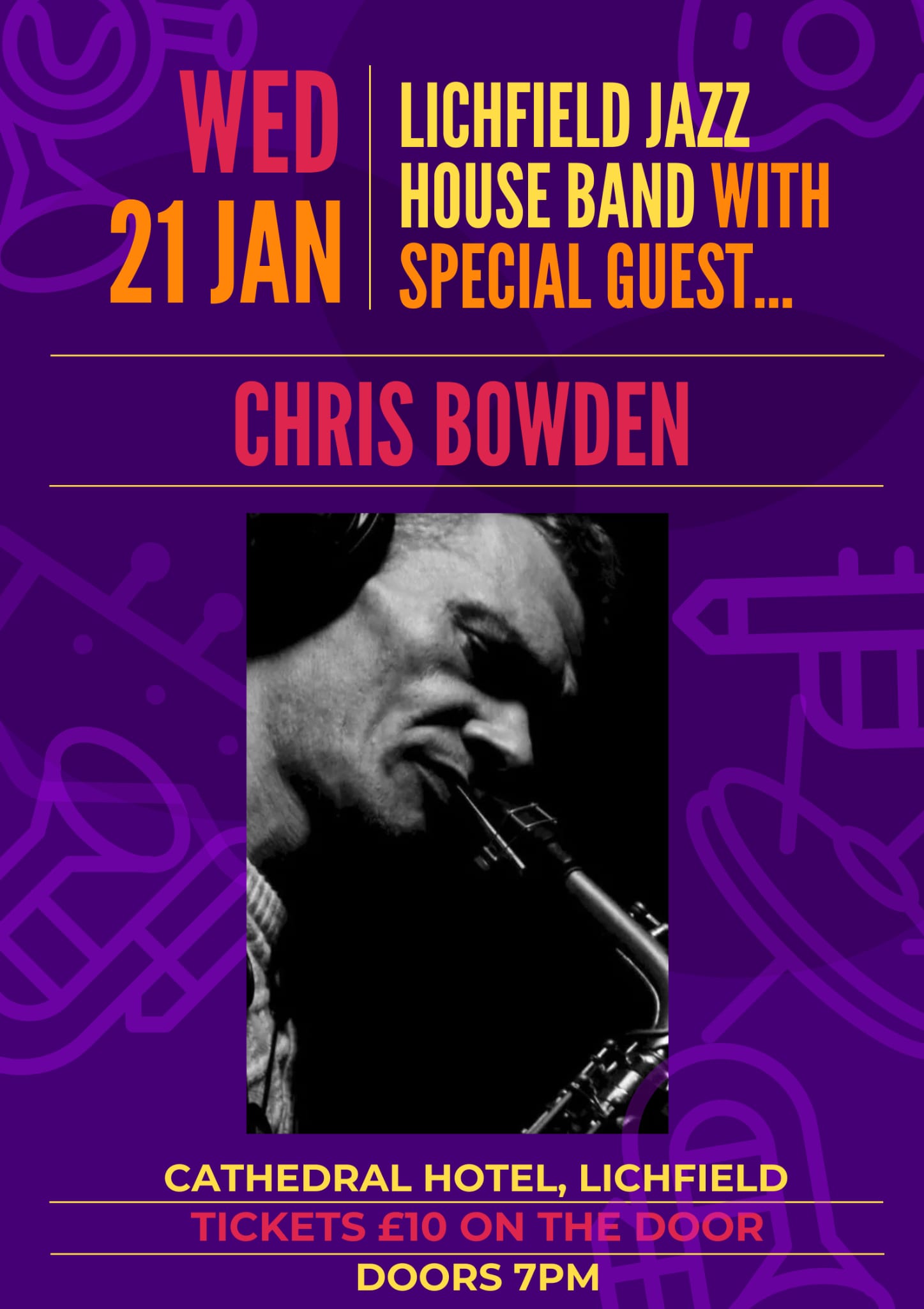 We look forward to welcoming you to the Cathedral Hotel 62 Beacon St, Lichfield WS13 7AR for a great night of live jazz music!
